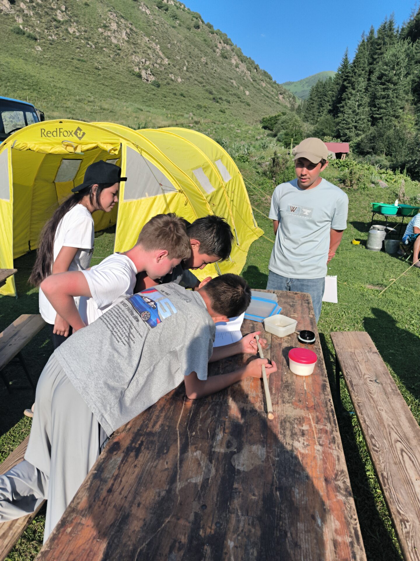 ? С 24 по 27 июня учащиеся кружка «Юные туристы-краеведы» СОШ N63 имени Ч.Т. Айтматова под руководством учителя истории, руководителя кружка Руслана Юрьевича приняли участие в трехдневном палаточном лагере в? Национальном природном парке Чон-Кемин
